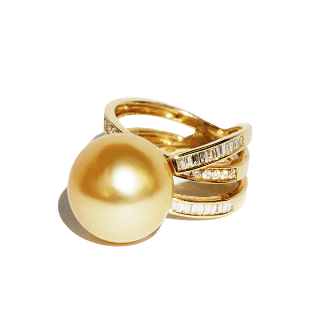 Golden South Sea Pearl Ring with 18K Yellow Gold and Diamonds
